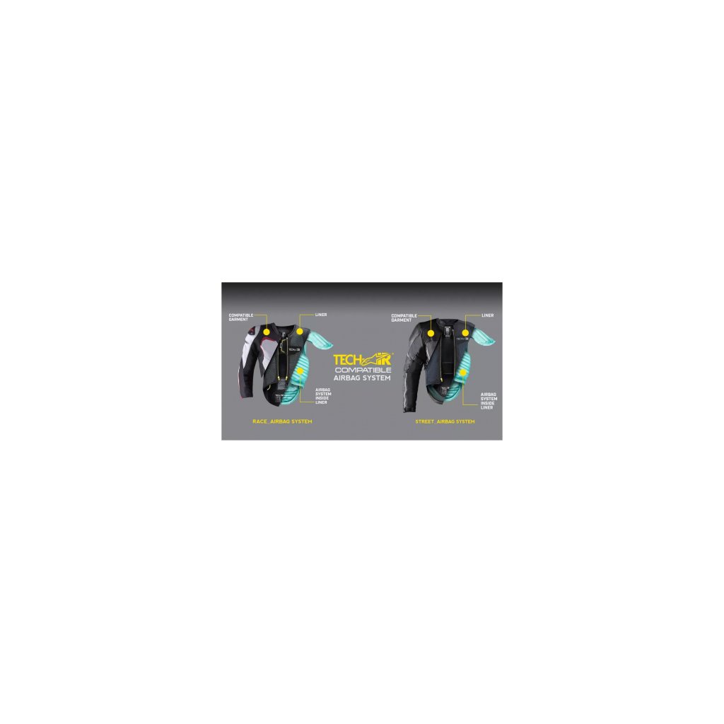Systém TECH-AIR® Race rozpozná, pokiaľ si vestu oblečiete, a sám aktivuje senzory. V prípade, že vestu nemáte na sebe, je systém neaktívny. Systém funguje iba pri reálnom páde. Airbagový systém riadi elektronická jednotka, ktorá je zabudovaná v pevnom, ľahkom, ergonomicky tvarovanom polymérovom chrániči chrbta, a je plne optimalizovaný na použitie na závodných tratiach. Riadiaca jednotka pracuje so 4 senzormi - 3 akcelerometre a 1 gyroskopom. Tieto senzory sú umiestnené na ramenách a chrbte. Systém ochrany jazdca je aktivovaný v 3 fázach – 1) detekcia možného pádu, 2) rozpoznanie pádu všetkými senzormi, 3) aktivácia airbagu. Čas nafúknutia airbagu je 45 milisekúnd.