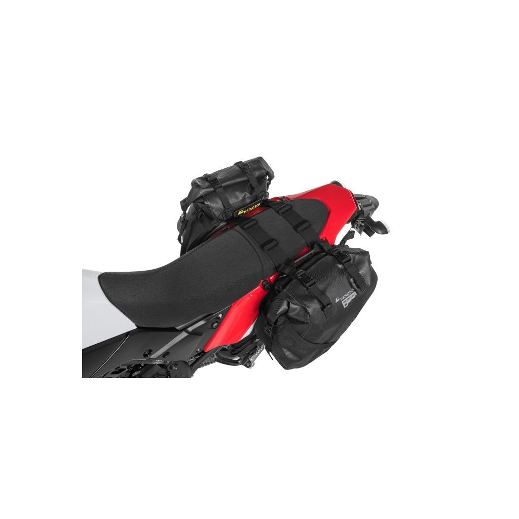 Info: Tašky sa uchytávajú cez sedadlo prostredníctvom popruhov. Nie je potrebný rám, ani nosič. Univerzálne riešenie pre väčšinu ADV motoriek.