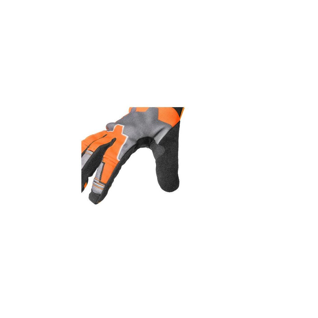 Dlaně jsou vyrobeny z odolné a vysoce citlivé syntetické kůže. Zde je použit jediný vzor, aby se zabránilo slabým místům způsobeným švy. Silikonové otisky na dlani a konečcích prstů zajišťují perfektní přilnavost na řídítkách a pákách.