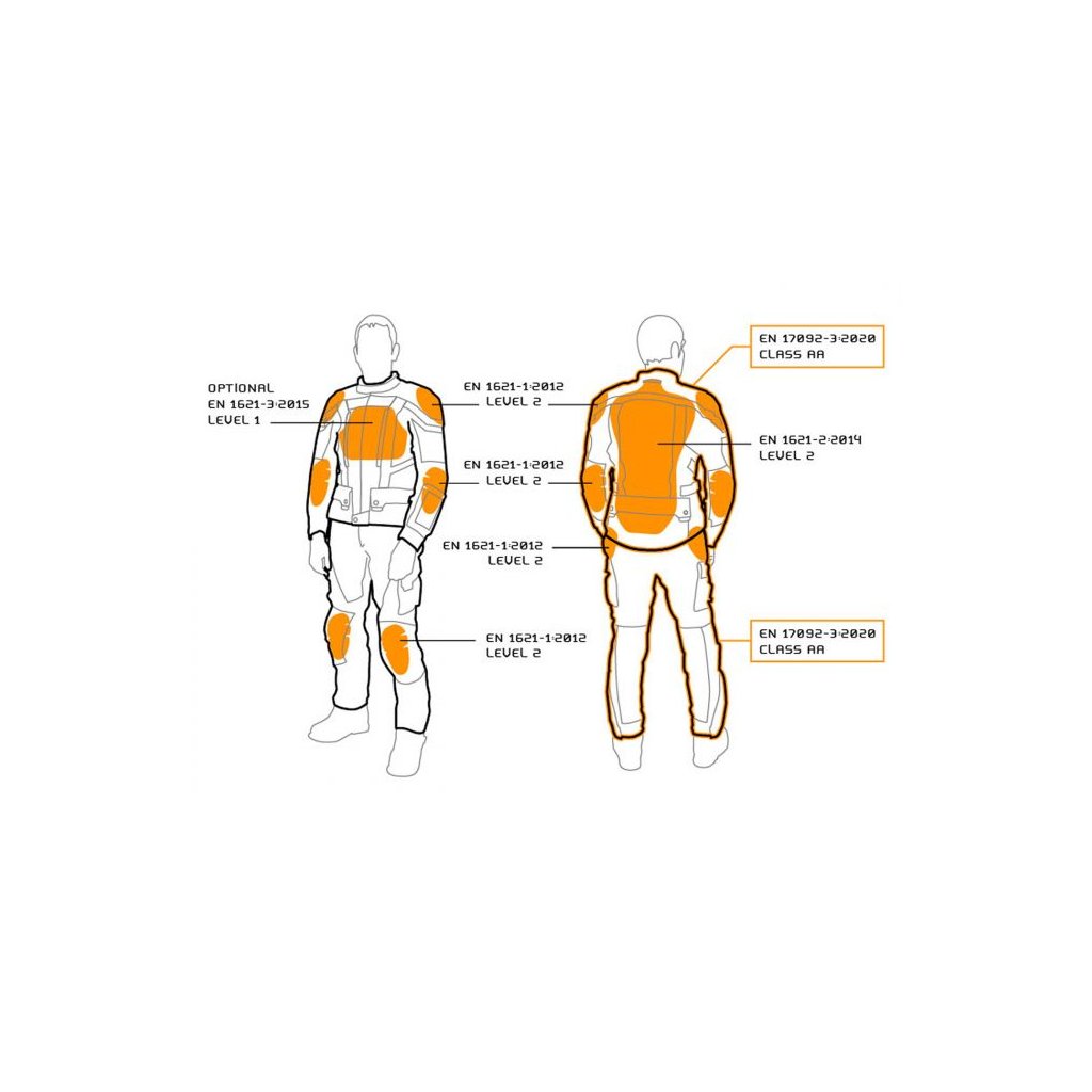 - chrbát (EN 1621-2: 20 14 / B, úroveň 2)