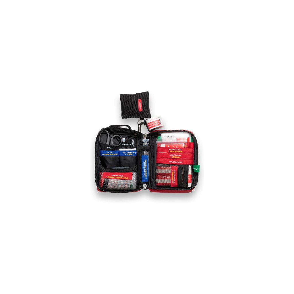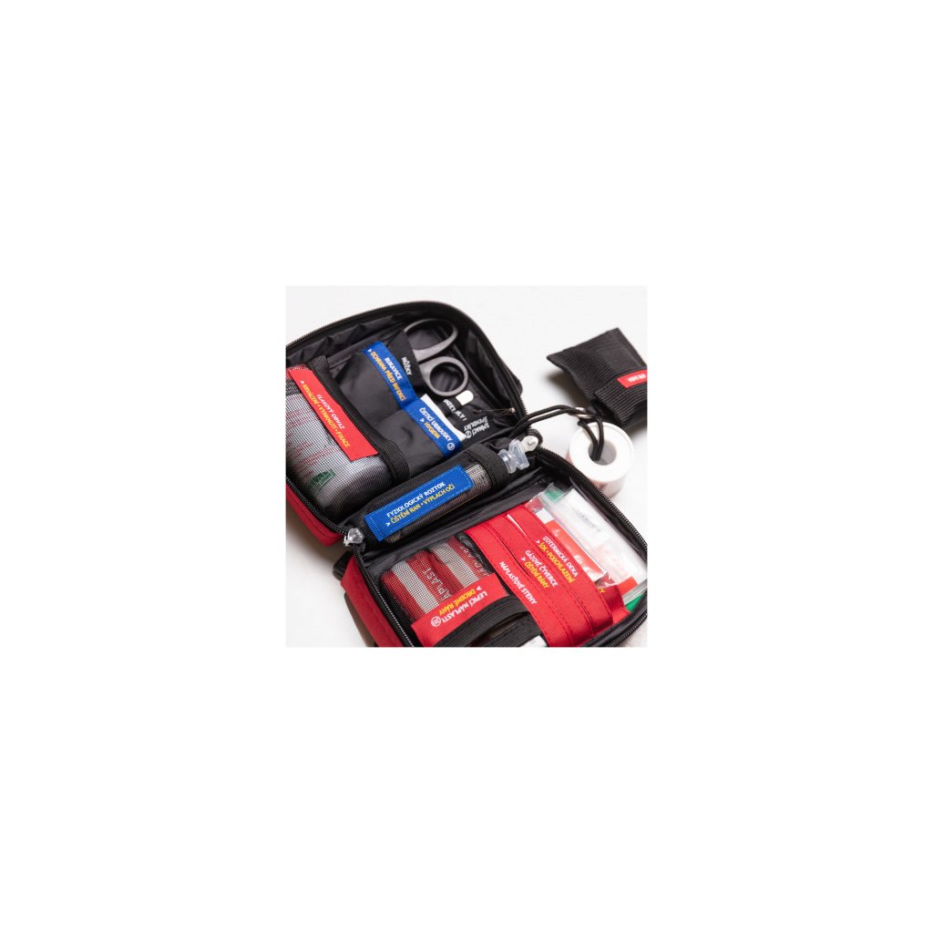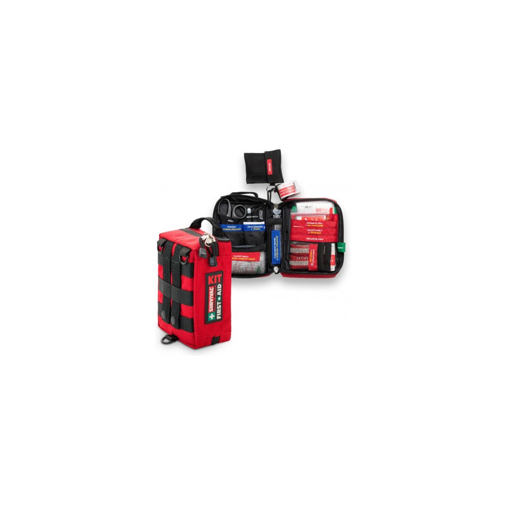 SURVIVAL First Aid KIT – Small je najkompaktnejšia lekárnička z celej rady SURVIVAL, navrhnutá na každodenné nosenie aj rýchle použitie na cestách. Napriek malým rozmerom prekvapí premysleným systémom: výbava je rozdelená do farebne označených sekcií podľa typu poranenia a každé vrecko má jasne čitateľný popis, vďaka ktorému okamžite viete, kam siahnuť.