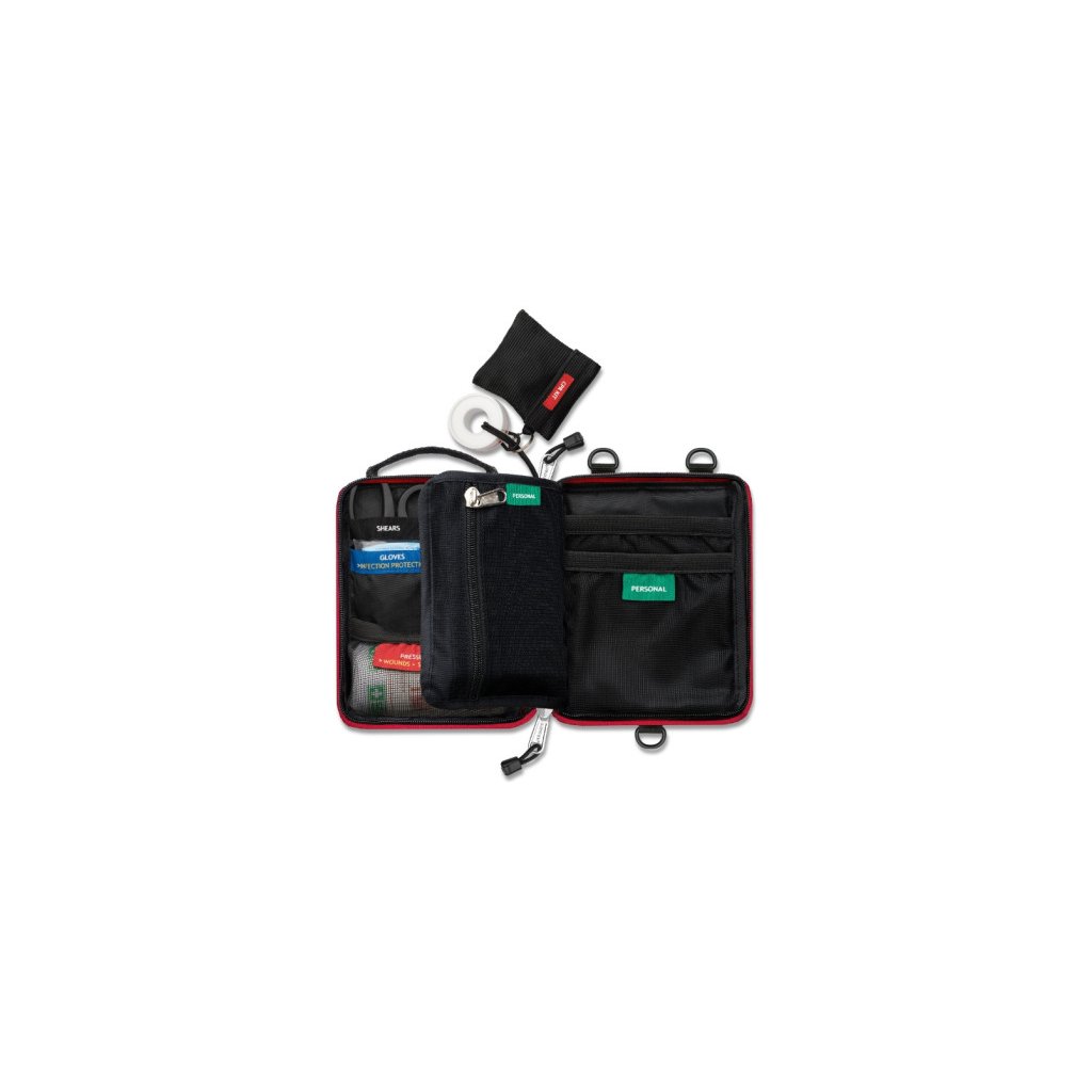 Každá položka má svoje pevné miesto, vrecká sú plytké a prehľadné a textové štítky napovedia, aký materiál použiť. To výrazne uľahčuje orientáciu aj vo chvíľach, keď je potrebné konať rýchlo. Small KIT tak podporuje rýchlu, sebavedomú a logickú reakciu v krízovej situácii, aj keď nemáte zdravotnícke skúsenosti.